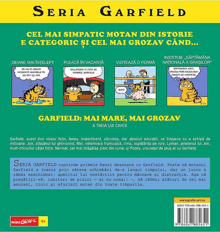 Seria garfield cuprinde primele benzi desenate cu garfield. . Mai mare, mai grozav jim davis 9786067885651